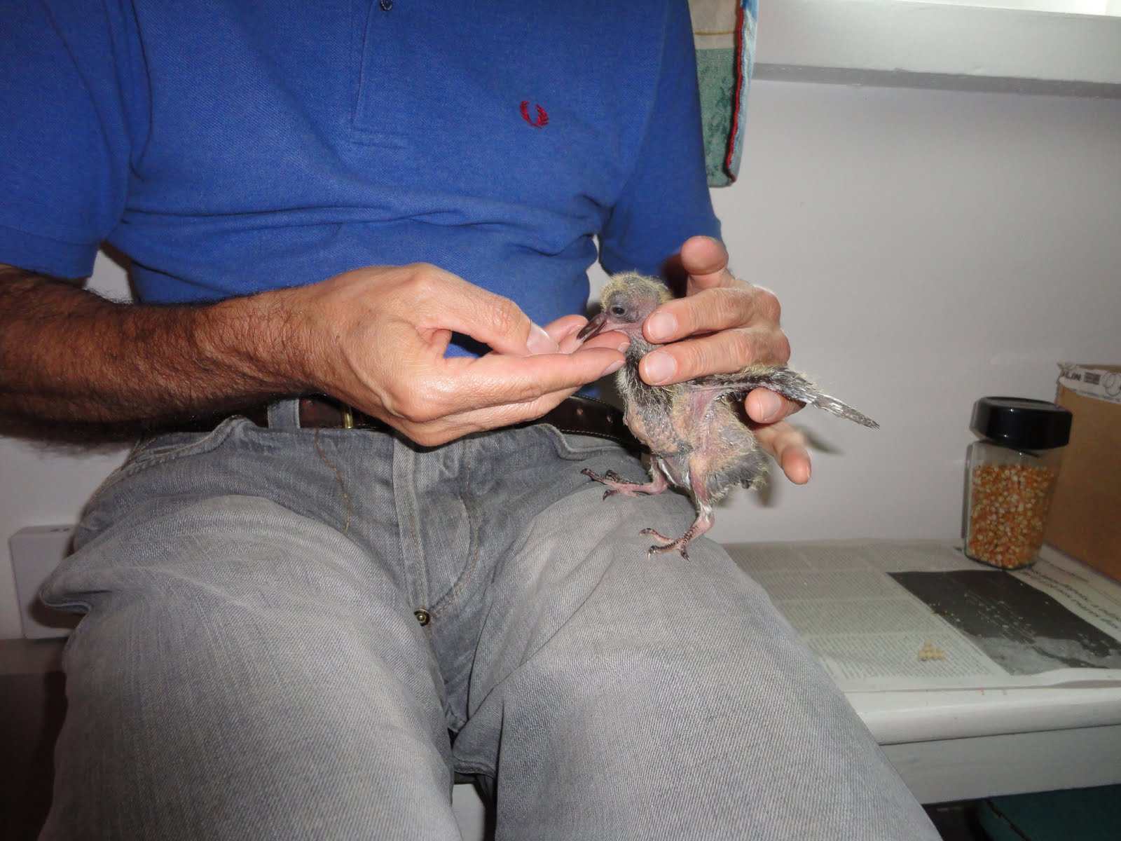 Com ajuda de cordas e, naturalmente, com alguma dificuldade, lá conseguimos descer até ao local. A princípio até receámos um pouco a reacção do animal mas tendo em conta o seu estado de carência não foi difícil cativá-lo. Conseguimos trazê-lo para cima onde lhe demos água e o alimento que tinhamos (bolachas).